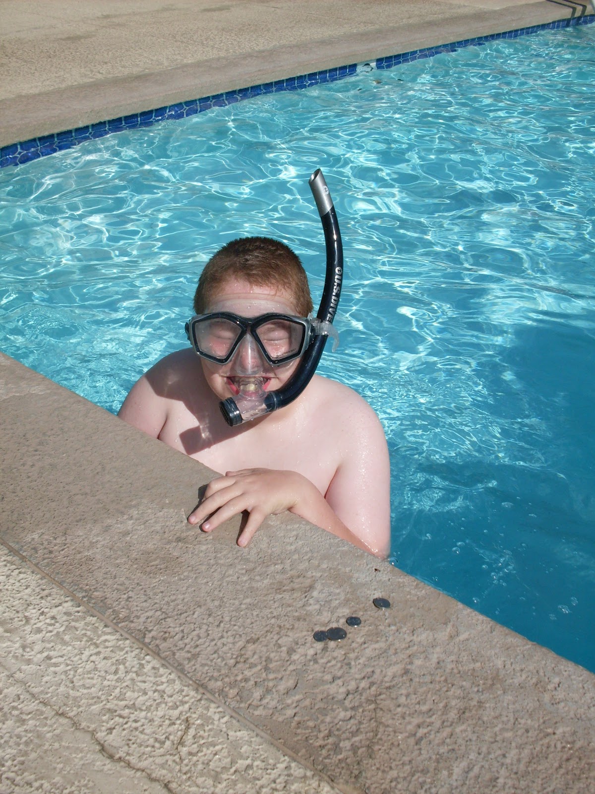 Then, with a little urging from his Dad, he began diving for coins at the bottom of the pool.